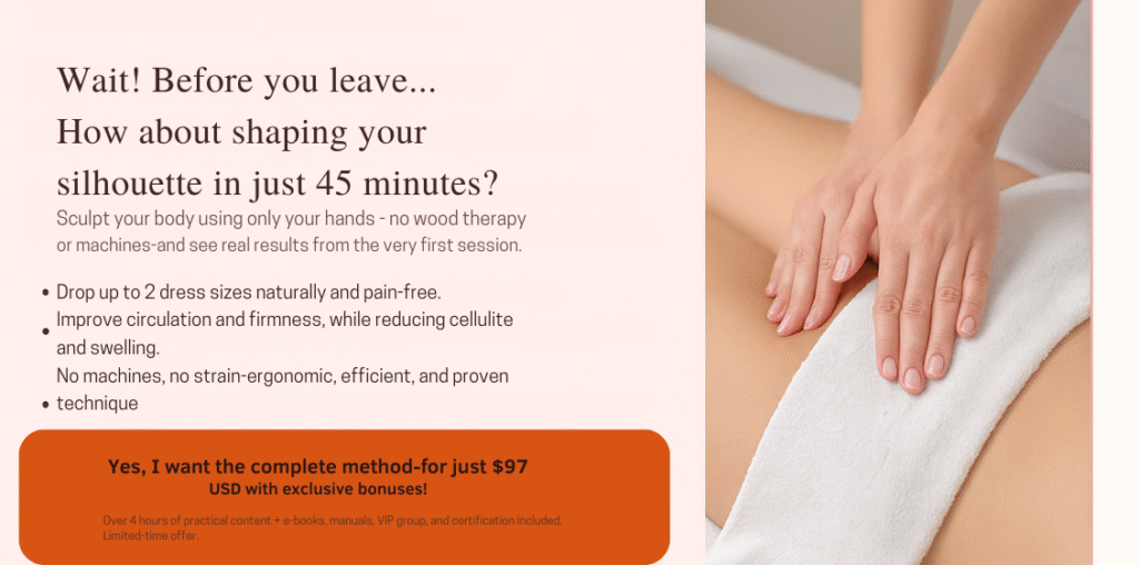 You will be able to shape your silhouette up to 2 sizes smaller from the first session, just with your hands! Expert in less than 10 days